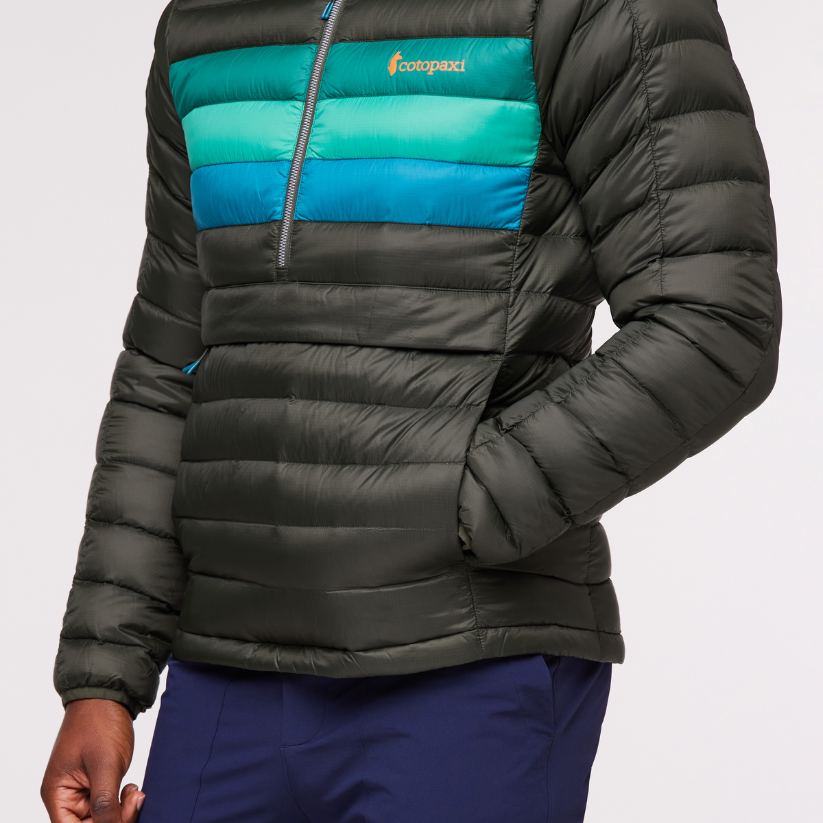 Our bestselling Fuego down jacket in hooded pullover form for winter layering