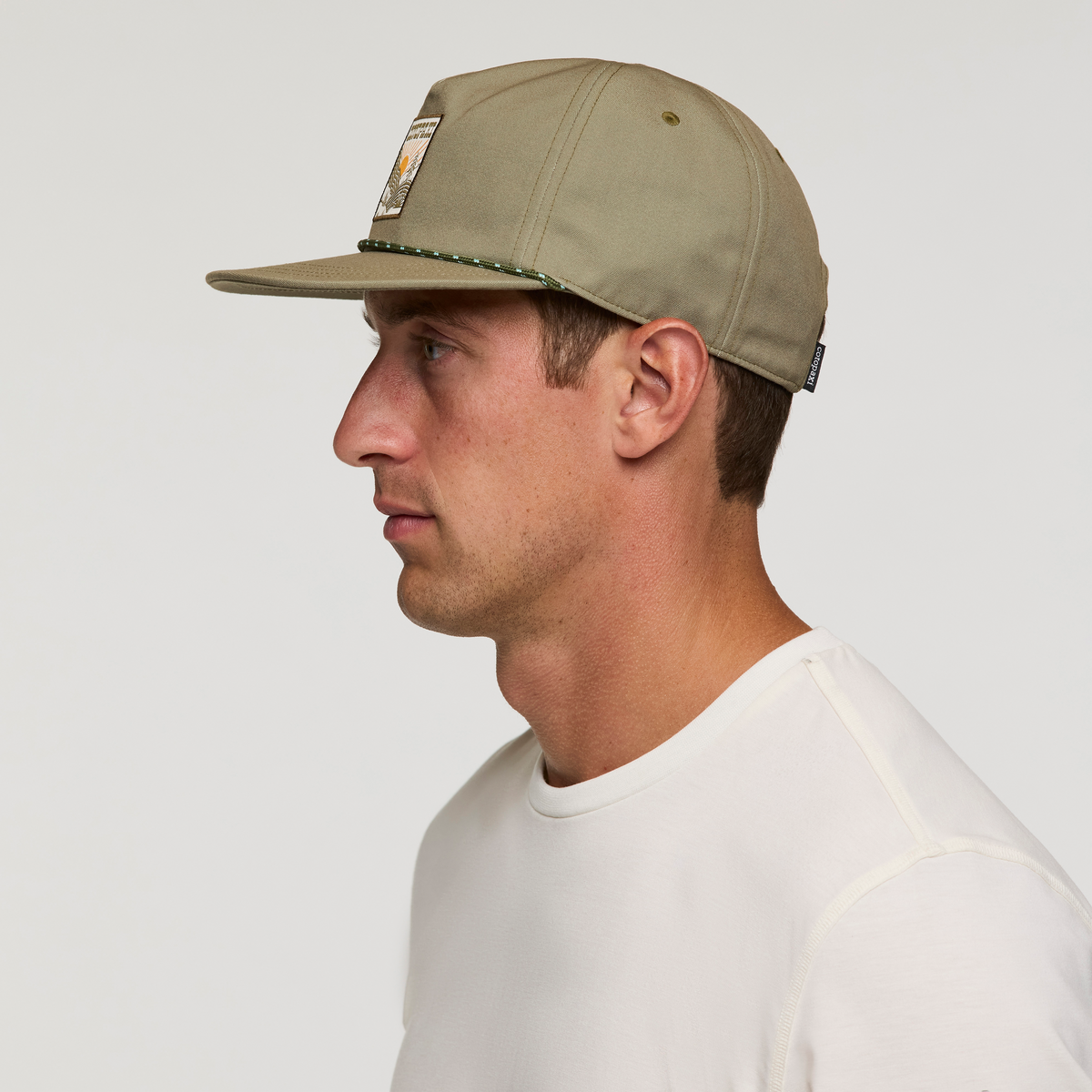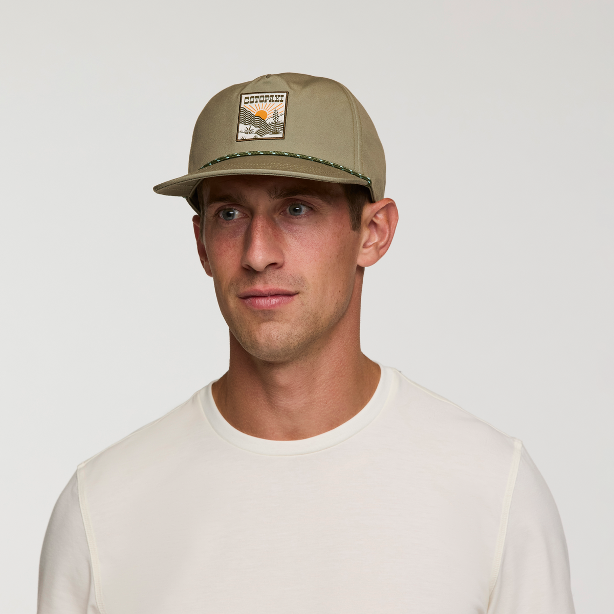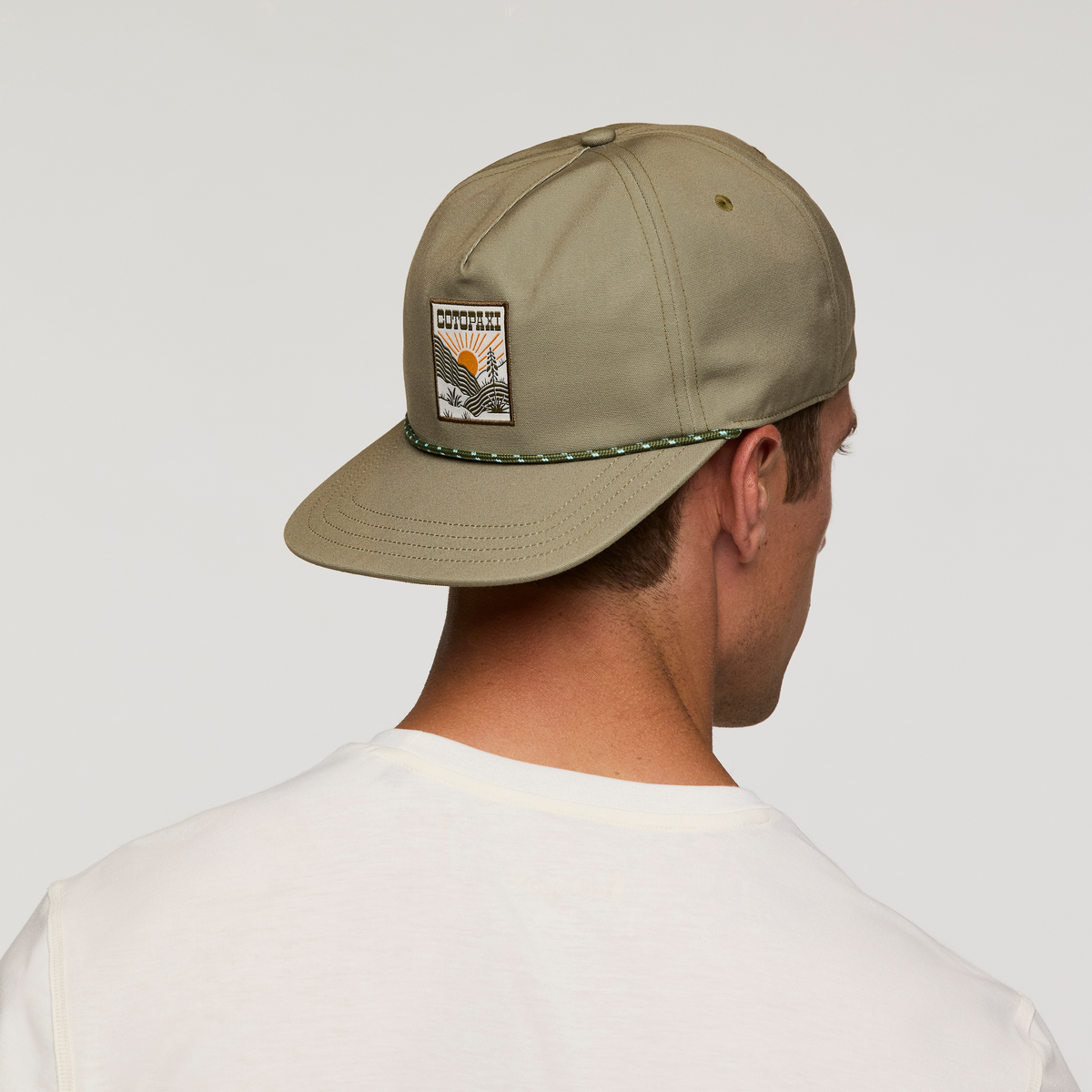 This vintage-inspired heritage rope hat features a tall front panel, a playful woven patch, and great coverage for sunny days.
